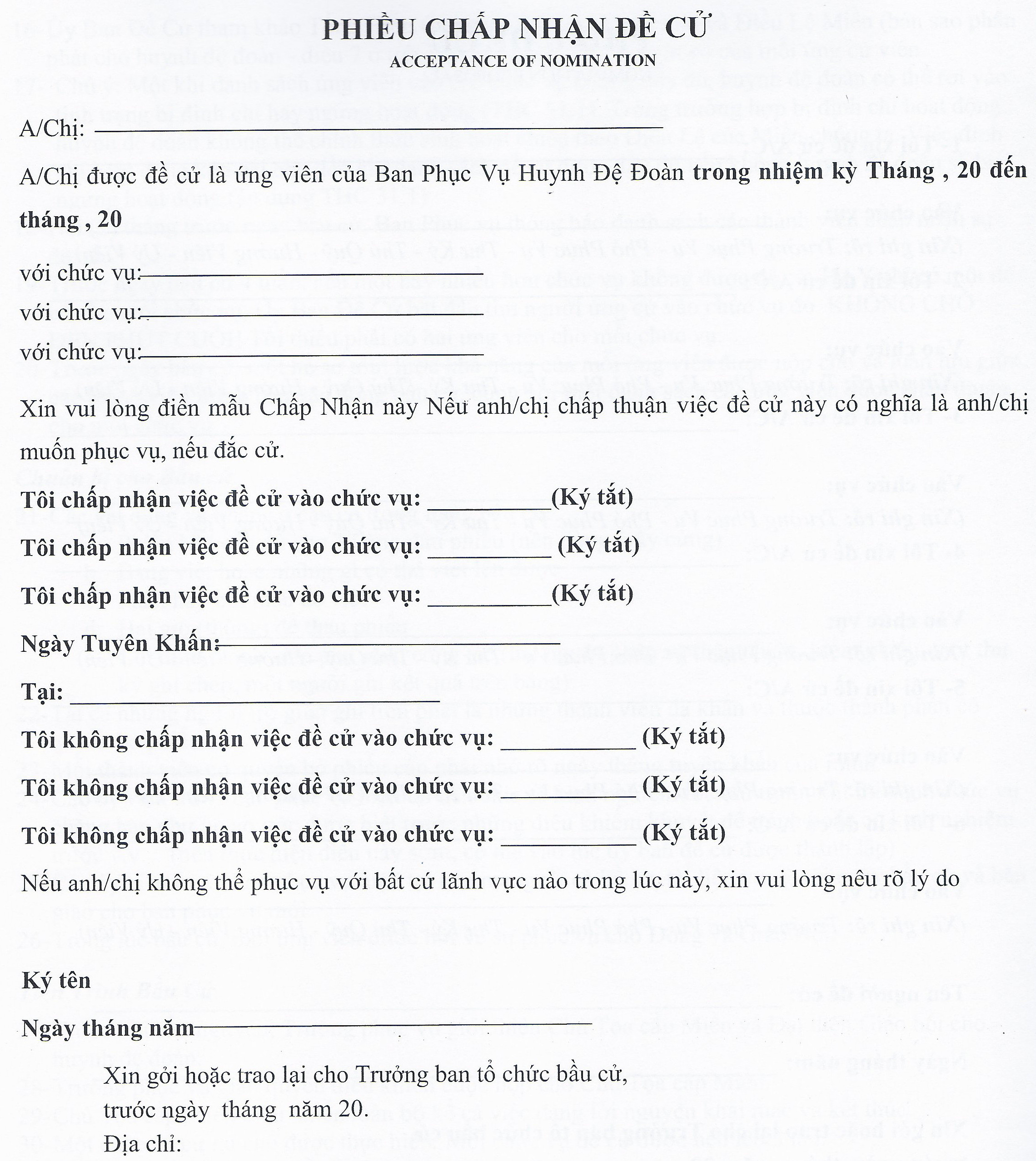 The other forms in this area are restricted to ministers.